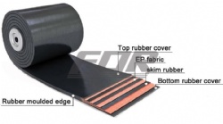 EP conveyor belts ,also called EP conveyor belts ,whose tension resistant body is canvas woven by polyester in warp and nylon-66 in weft .The belts have the characteristics of low elongation in warp and good troughability in weft ,good water resistance ,good wet strength ,no mould, suitable for medium ,long-distance and heavy-load transportation of materials .Because of the high initial modulus of polyester ,the belts can choose a relative low safety factor.